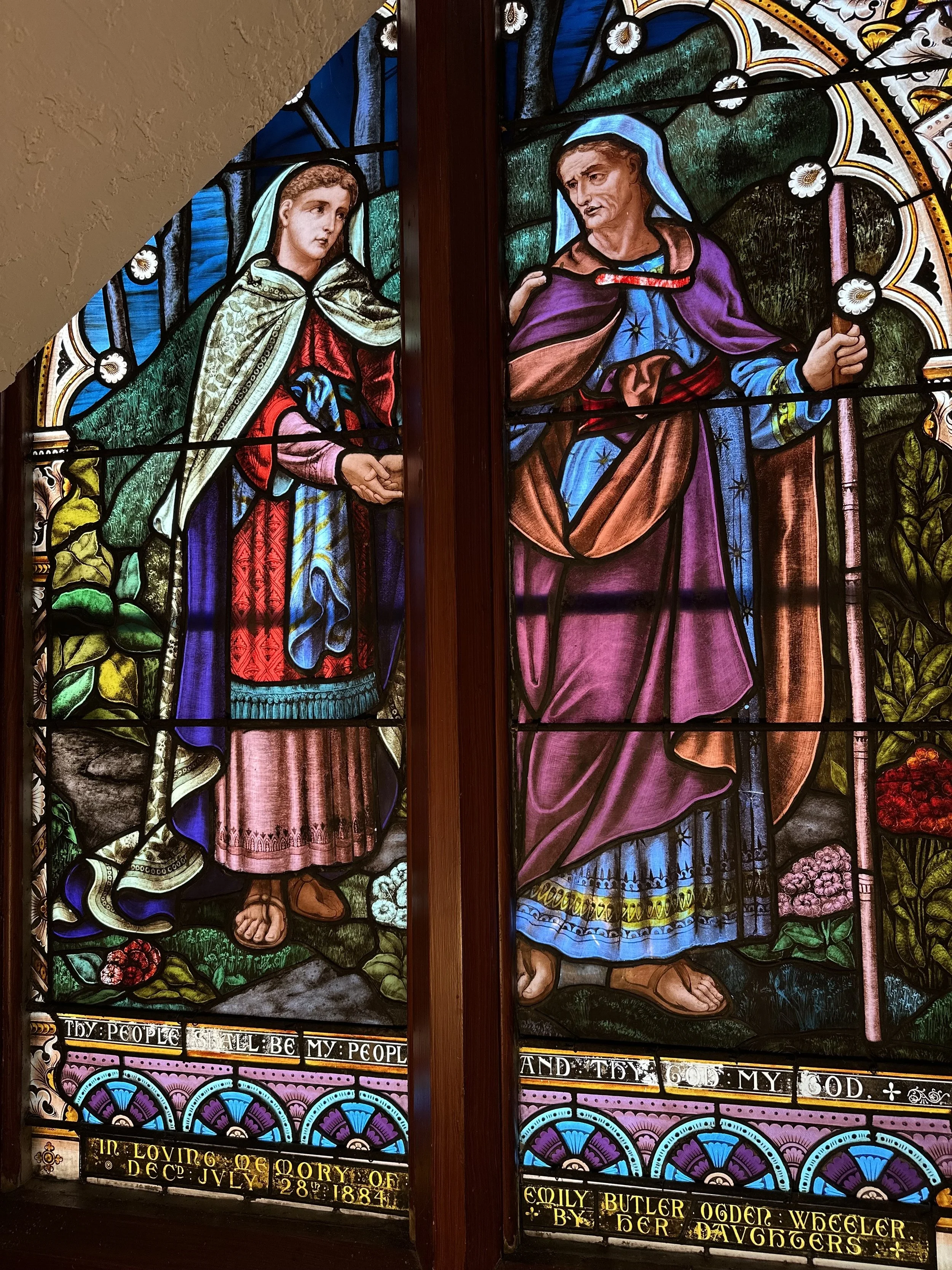 The stained glass windows were installed in the late 1800's by generous gifts from members of the Ogden family.